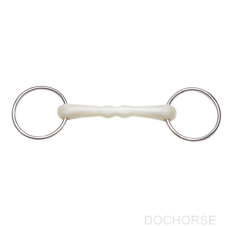Wędzidło oliwkowe z prostym ustnikiem Flexi o smaku jabłkowym i pierścieniami ze stali nierdzewnej. Grubość 21 mm.