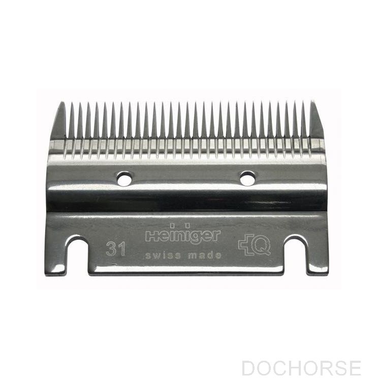 This shear blade set consists of top blade (23 teeth) and bottom blade (31 teeth) for a close clipping hair length after clipping: 2 - 4 mm