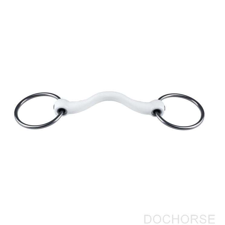 TESTER maat 12.5 cm. Watertrens met een harde tongboog. Inclusief rubberen bitringen. Geschikt voor gevoelige en jonge paarden.